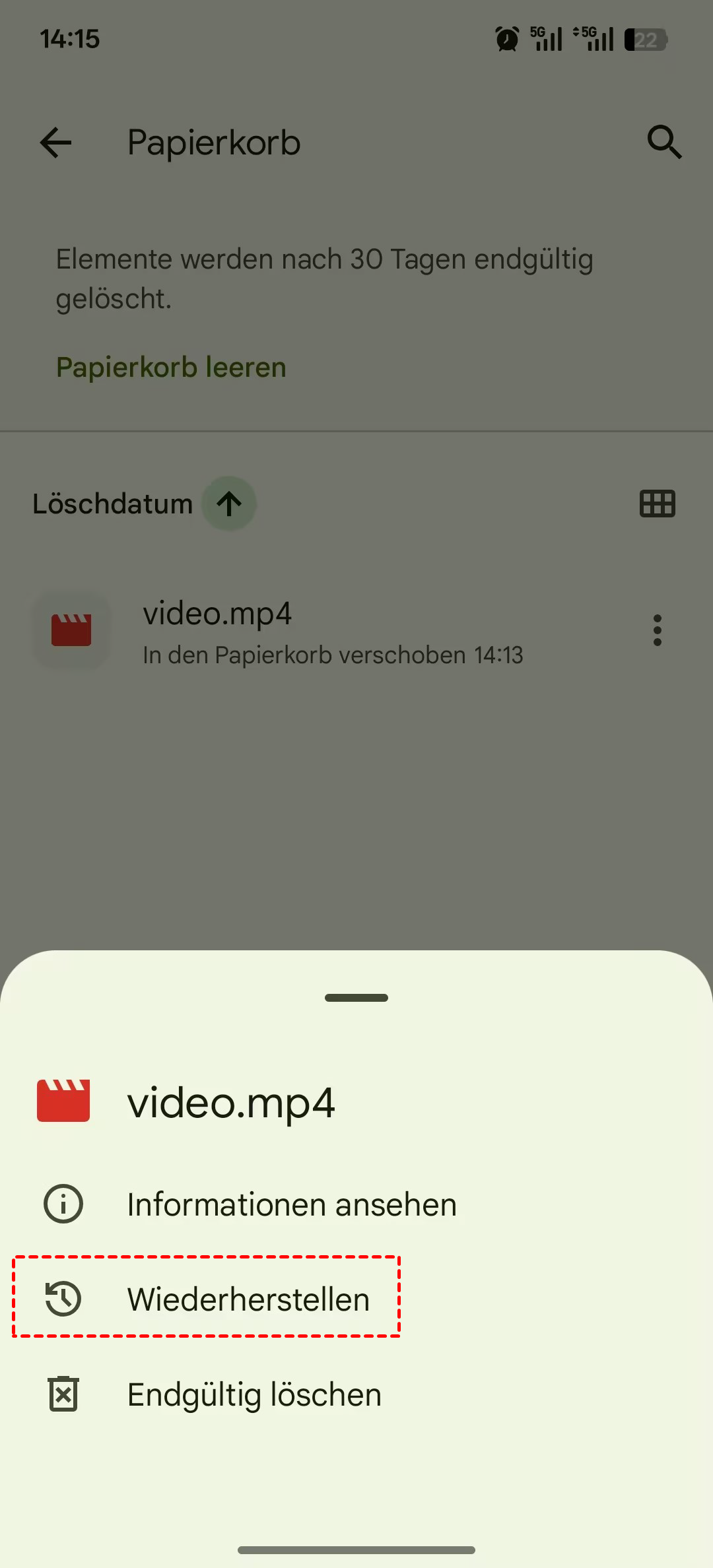 Wenn Ihr Android-Smartphone über einen Papierkorb oder eine ähnliche Funktion wie „Zuletzt gelöscht“ verfügt, ist die Wiederherstellung versehentlich gelöschter Dateien ganz einfach. Diese Funktionen speichern gelöschte Dateien vorübergehend für einen bestimmten Zeitraum, sodass Sie die Daten ohne zusätzliche Tools wiederherstellen können.