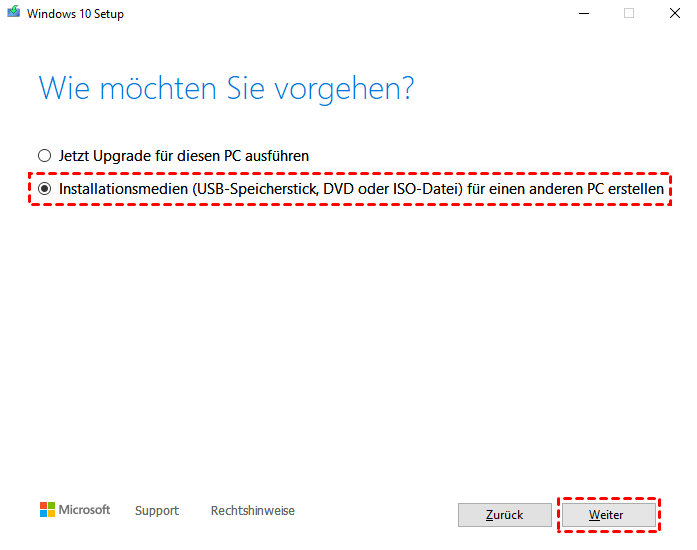 - Wählen Sie im Tool Installationsmedium für einen anderen PC erstellen.