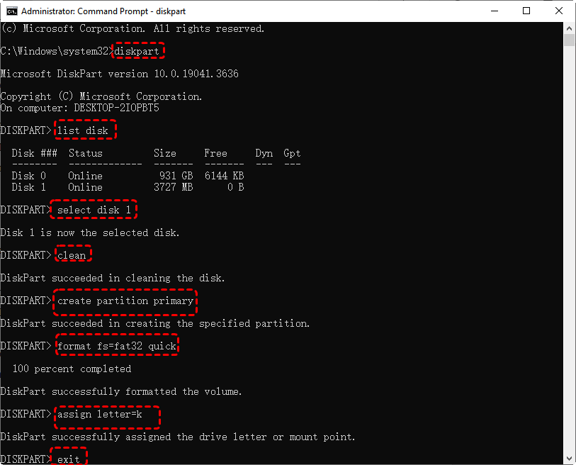 - assign letter=g (g ist Ihr Laufwerksbuchstabe für das USB-Laufwerk)