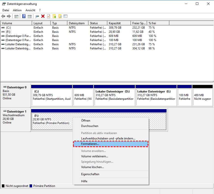 Kommen wir nun zur vollständigen Schritt-für-Schritt-Anleitung, wie Sie ein USB-Laufwerk für Windows 10/11 mit der Datenträgerverwaltung formatieren: