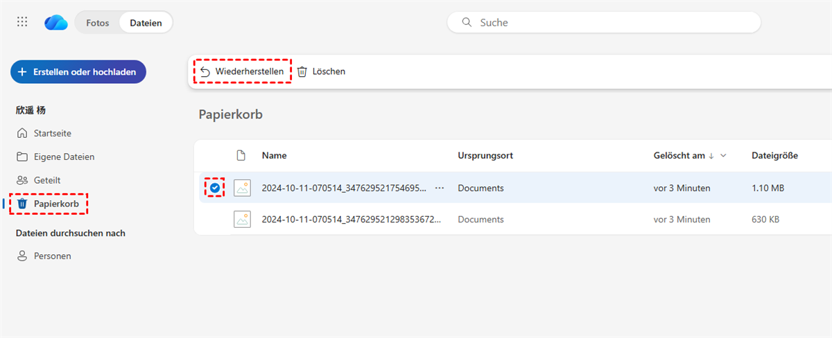 Wenn Sie Cloud-Backups (OneDrive, Google Drive) verwenden, überprüfen Sie den Papierkorb des jeweiligen Dienstes.