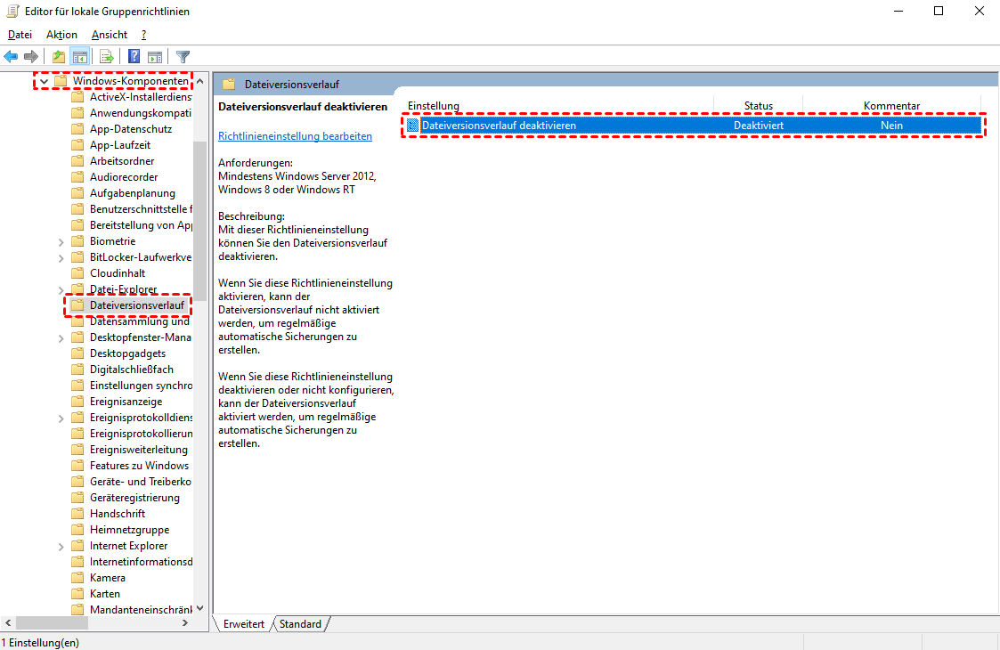 In verwalteten Umgebungen deaktivieren Administratoren den Dateiversionsverlauf häufig über Gruppenrichtlinien, um die Datensicherungslösungen des Unternehmens durchzusetzen. Diese Einstellungen überschreiben die individuellen Versuche einzelner Benutzer, die Funktion zu aktivieren.