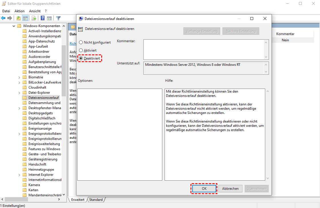 7 Gründe + Lösungen: Dateiversionsverlauf unter Windows 10 lässt sich nicht aktivieren