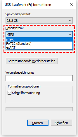 Lösung 3: Das Dateisystem des Laufwerks formatieren