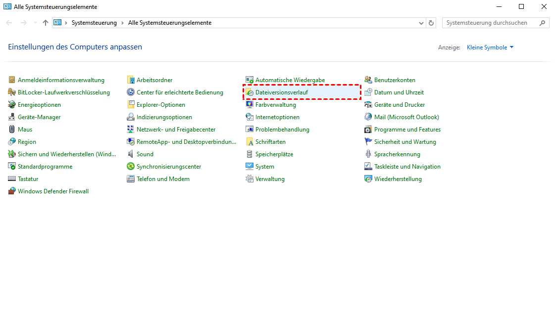 👉Dateiversionsverlauf: Gehen Sie zu Systemsteuerung > Dateiversionsverlauf, um zu prüfen, ob Sicherungskopien vorhanden sind.