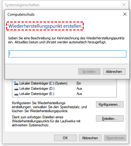 So erstellen Sie manuell einen Systemwiederherstellungspunkt