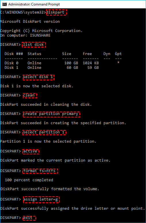 8. Geben Sie assign letter=G ein und drücken Sie die Eingabetaste.