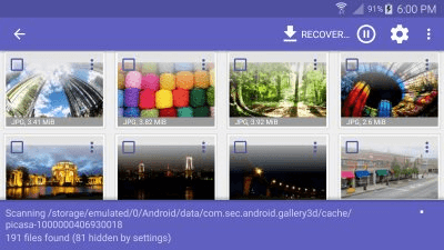 Schritt 3. Sobald der Scanvorgang startet, wird der Hauptbildschirm von DiskDigger angezeigt, auf dem nach und nach die wiederherstellbaren Dateien angezeigt werden.
