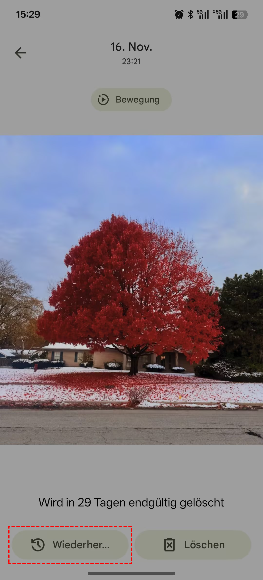Schritt 4. Tippen Sie unten auf „Wiederherstellen“. Ihr Foto oder Video befindet sich nun wieder in den Alben, der Google Fotos-Bibliothek oder der Galerie-App Ihres Smartphones. Sehen Sie sie sich einfach nacheinander an.