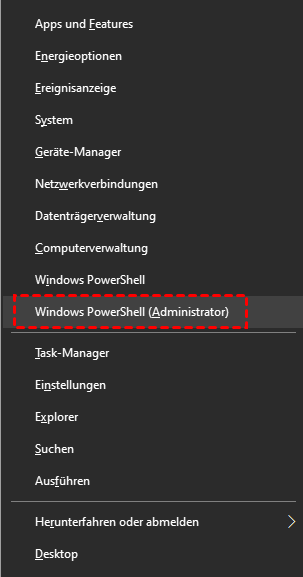 Drücken Sie Win + X → Wählen Sie „Windows PowerShell (Administrator)“ in Windows 11 bzw. „Eingabeaufforderung (Administrator)“ in Windows 10.