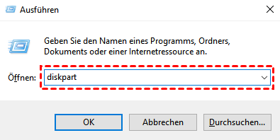 1. DiskPart starten: Drücken Sie „Win + R“, geben Sie „diskpart“ ein und drücken Sie die Eingabetaste.