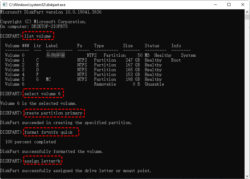 6. Einen Laufwerksbuchstaben zuweisen: assign letter=K (Ersetzen Sie „K“ durch einen anderen verfügbaren Buchstaben).