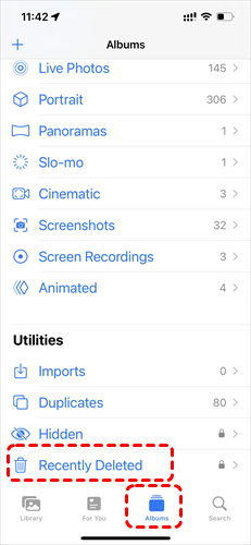 1. Überprüfen Sie das Album „Zuletzt gelöscht“