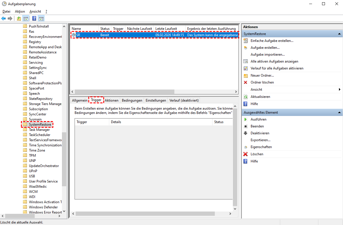 Schritt 2. Erweitern Sie die Taskplanerbibliothek und navigieren Sie zu Microsoft > Windows > SystemRestore.