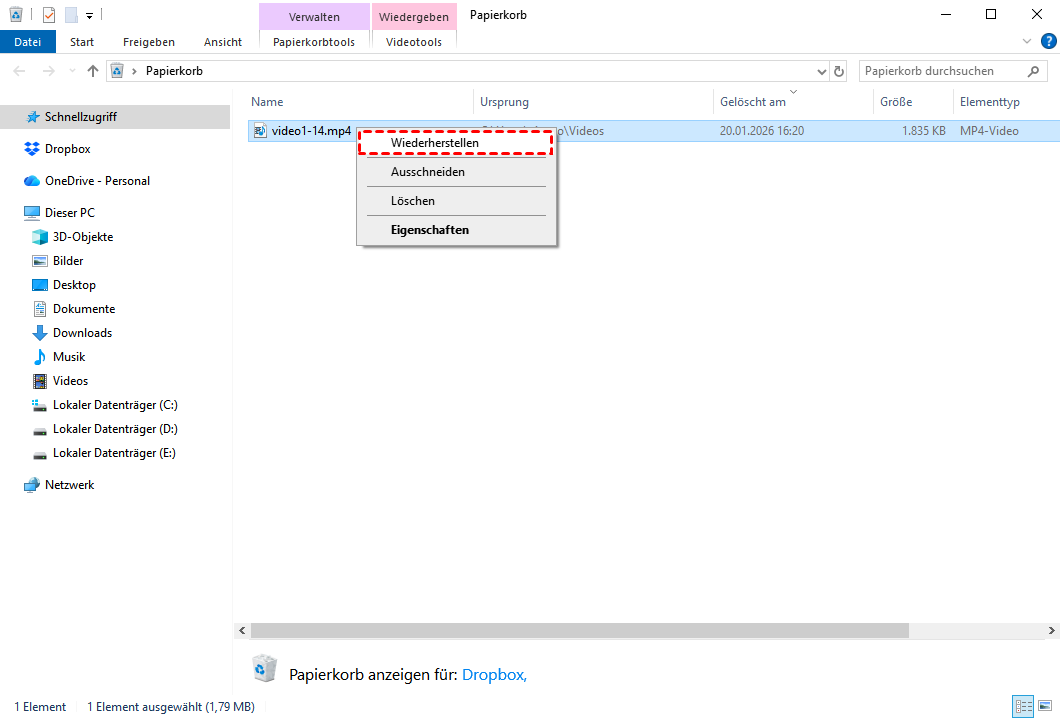 Methode 2: Aus dem Papierkorb wiederherstellen