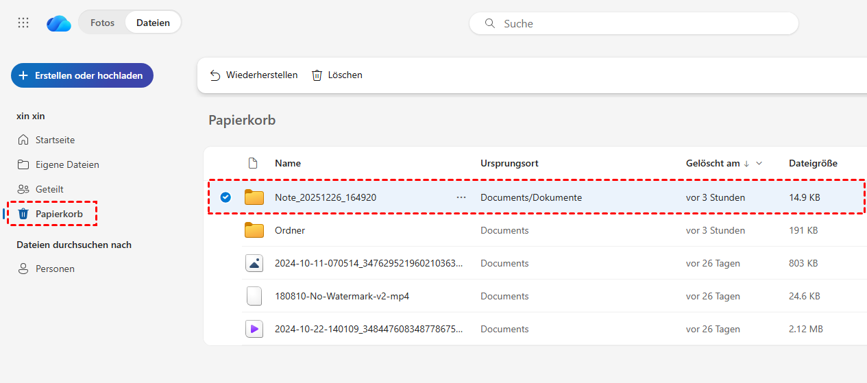 Wenn Ihr Notizbuch mit OneDrive synchronisiert ist, können Sie es oft aus dem OneDrive-Papierkorb wiederherstellen. Dies ist eine zuverlässige Methode, wenn das Notizbuch kürzlich gelöscht wurde.