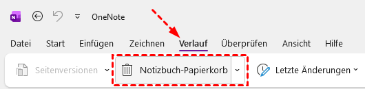 Schritt 2: Wechseln Sie zum Tab „Verlauf“ und klicken Sie dann auf „Notizbuch-Papierkorb“.