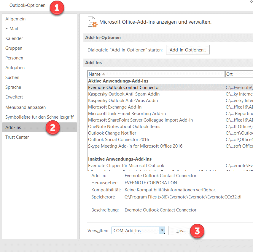 - Starten Sie Outlook im abgesicherten Modus und deaktivieren Sie die Add-Ins.