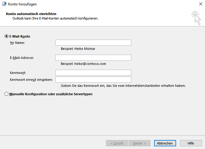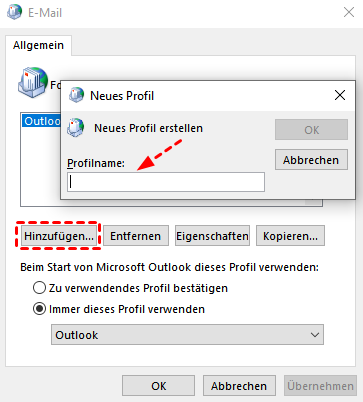 - Erstellen Sie ein neues Outlook-Profil.