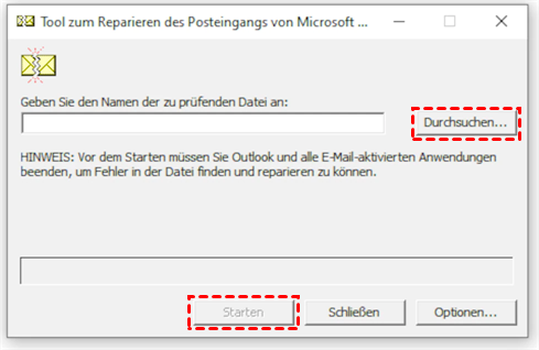 Schritt 2. Klicken Sie im Fenster des Microsoft Outlook-Posteingangsreparaturtools auf „Durchsuchen“, um die zu reparierende PST-Datei auszuwählen.