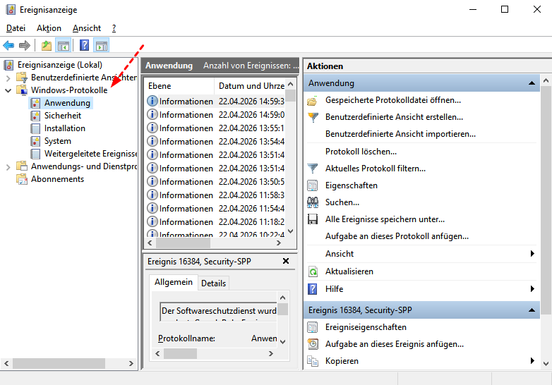Mithilfe der Ereignisanzeige können Sie die Ursache für Outlook-Probleme ermitteln, indem Sie das Ereignisprotokoll untersuchen.