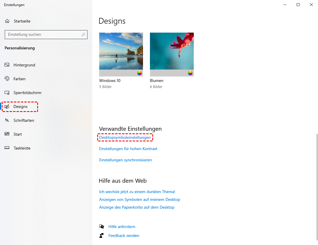 Methode 2. Papierkorb verstecken über Desktopsymboleinstellungen