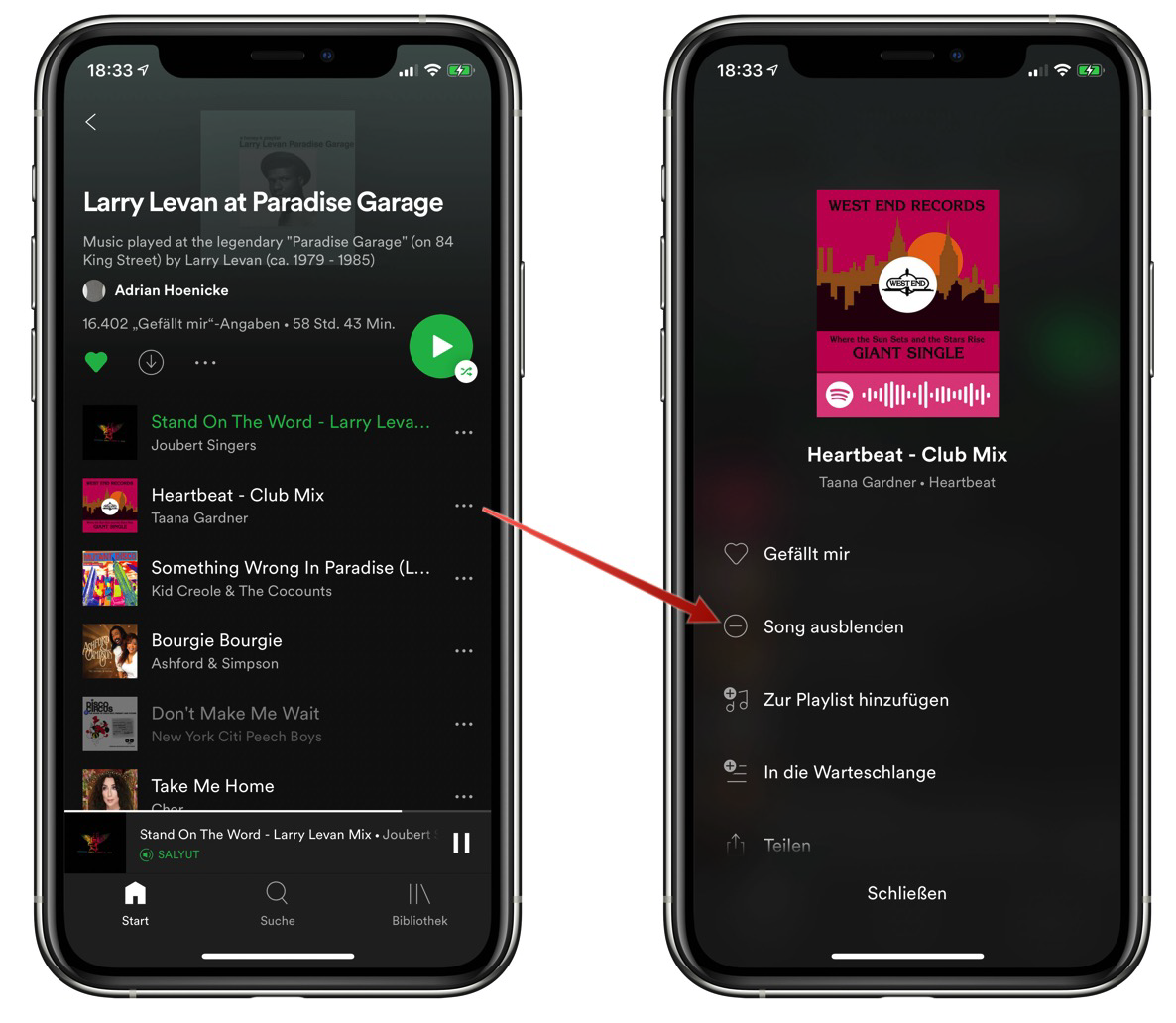 Wie kann ich Songs bei Spotify ausblenden oder teilen?