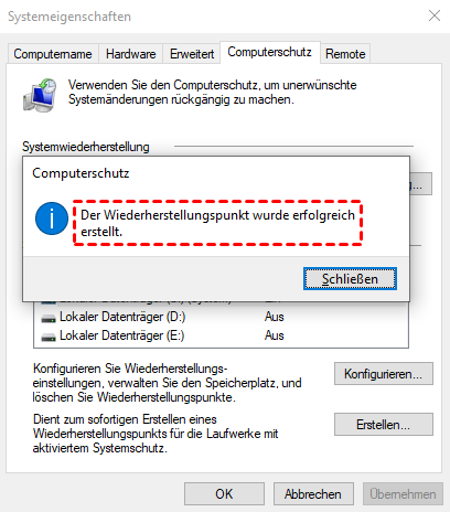 Teil 1: Eine Wiederherstellungspunkt manuell erstellen