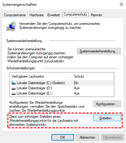 1. Wiederherstellungspunkte erstellen