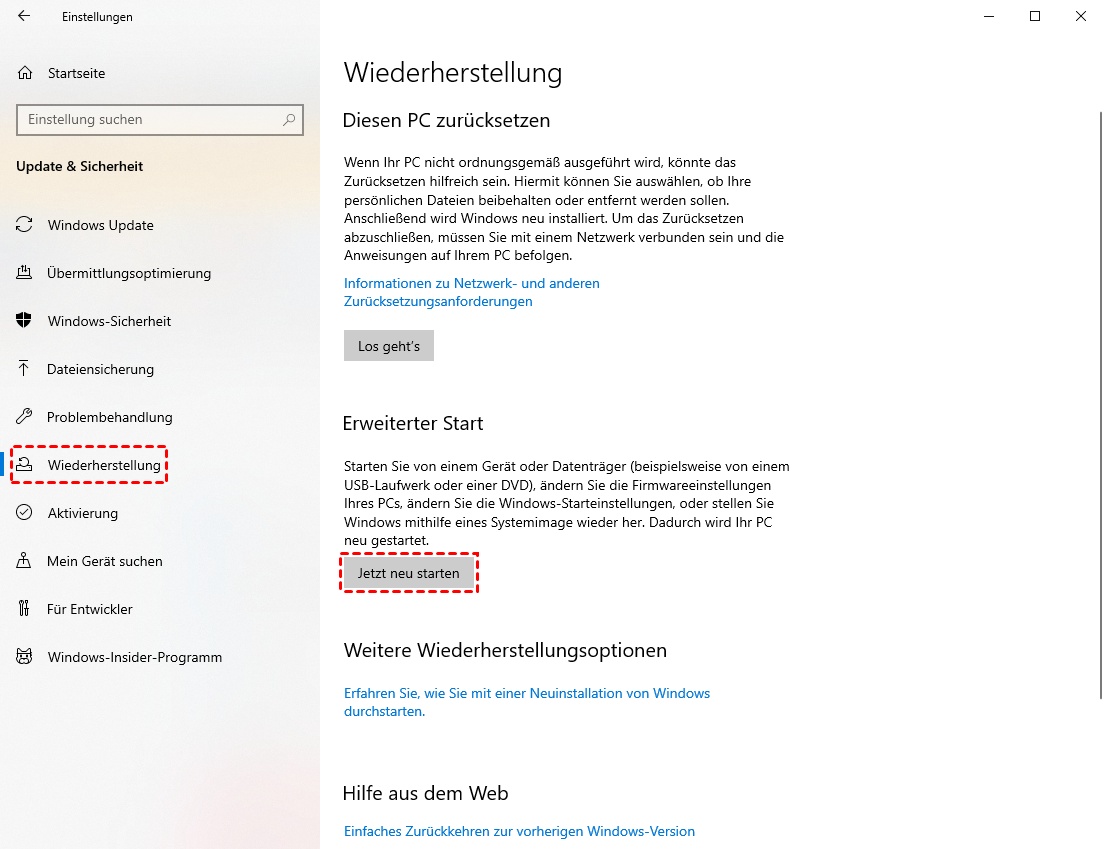 Schritt 2: Klicken Sie unter „Erweiterter Start“ auf „Jetzt neu starten“.