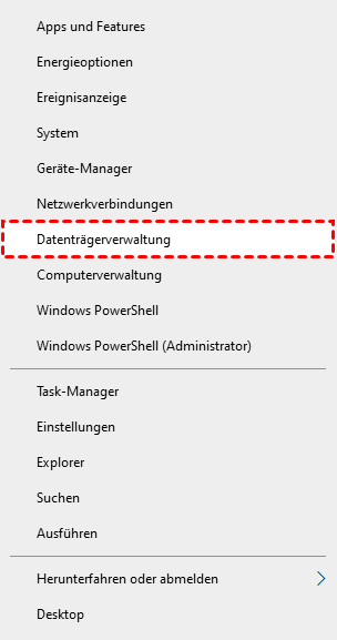 2. Drücken Sie die Tastenkombination „Win + X“ und wählen Sie „Datenträgerverwaltung“.