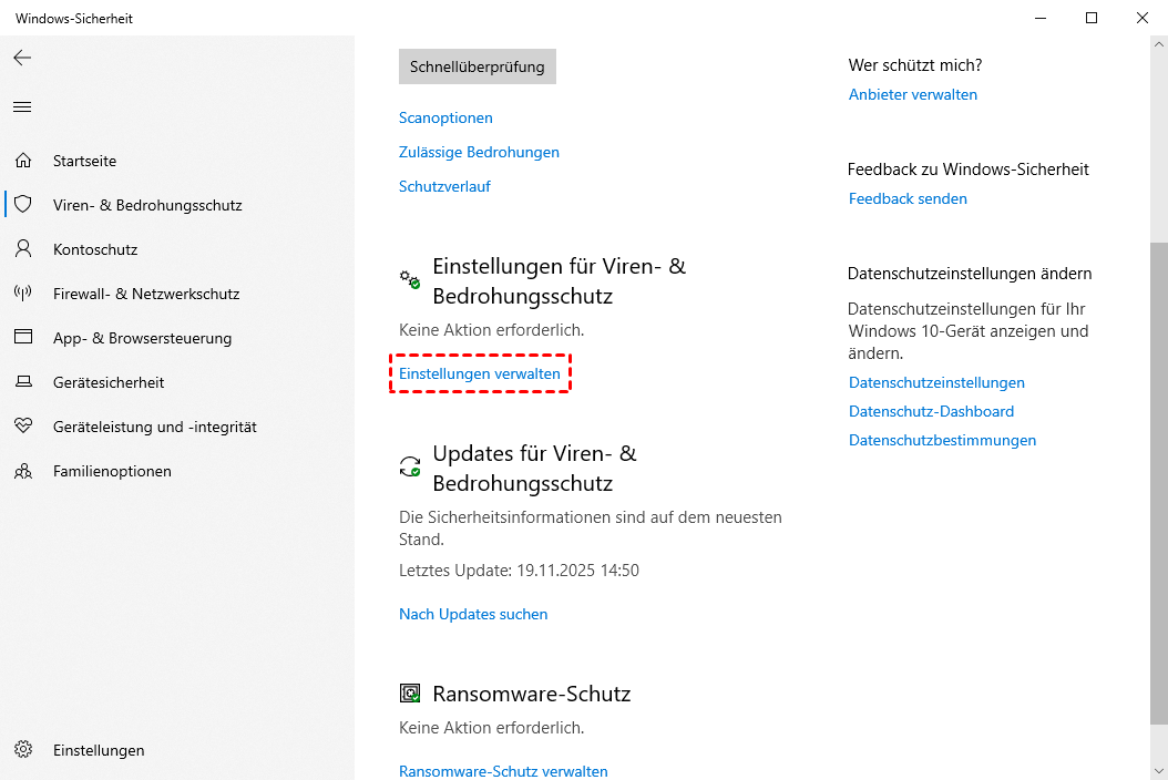 Schritt 2. Navigieren Sie zu „Viren- & Bedrohungsschutz“.