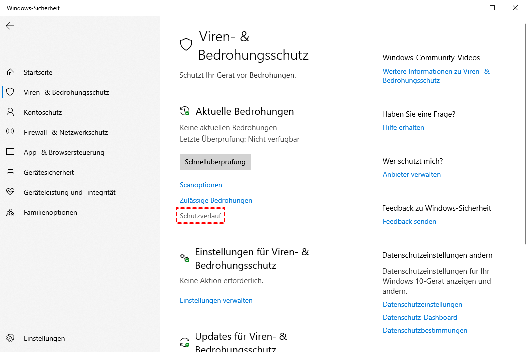 Schritt 3. Klicken Sie unter „Aktuelle Bedrohungen“ auf „Schutzverlauf“.