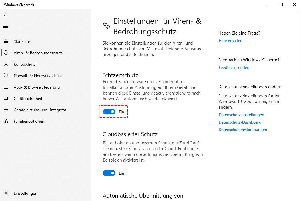 3. Echtzeitschutz vorübergehend deaktivieren (für kritische Operationen)