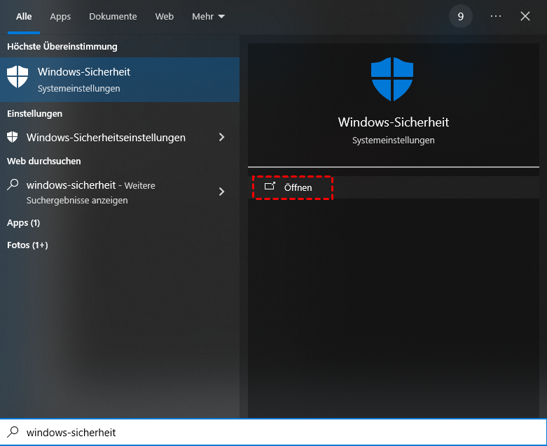 Schritt 1: Öffnen Sie „Windows-Sicherheit“.