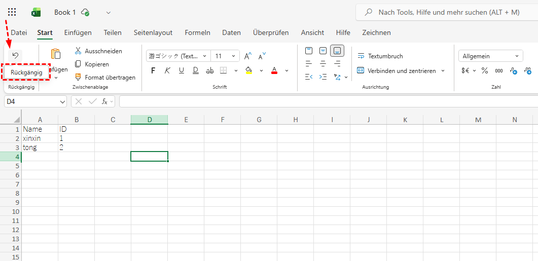 Methode 1. Änderungen rückgängig machen mit „Ctrl+Z“