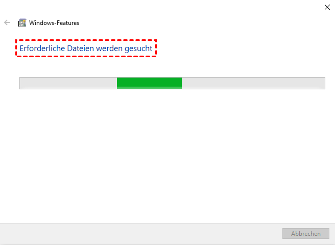 5. Das System zeigt den Fortschrittsbalken „Erforderliche Dateien werden gesucht“ an. Warten Sie einige Minuten, während das System Komponenten herunterlädt/installiert.