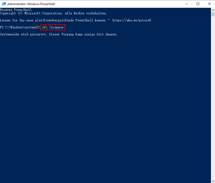 2. Geben Sie im Fenster exakt „sfc /scannow“ ein und drücken Sie die Eingabetaste, um den Scan zu starten.