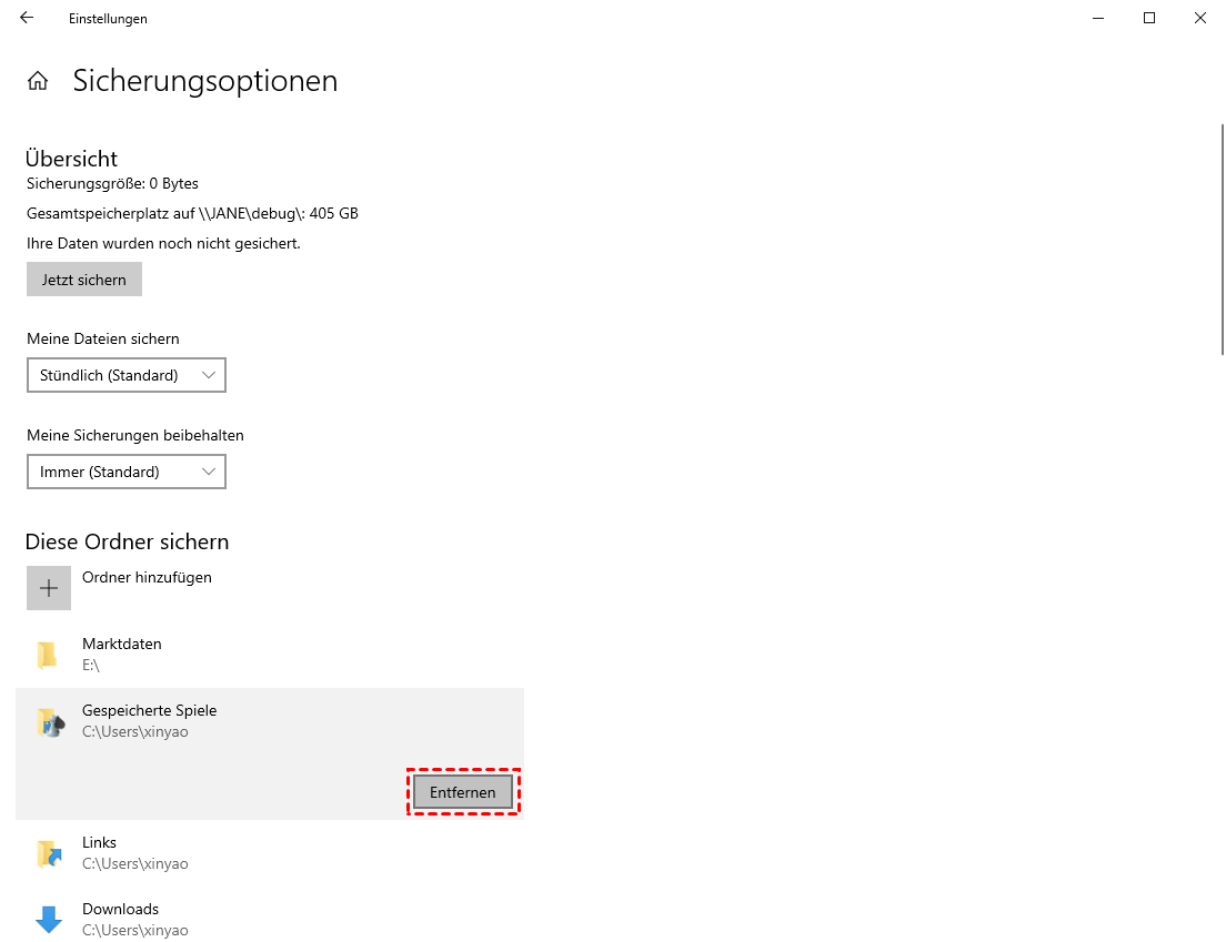 Wählen Sie den Ordner aus und klicken Sie zur Bestätigung auf „Diesen Ordner auswählen“. Der Ordner wird nun in Ihrer Sicherungsliste angezeigt.