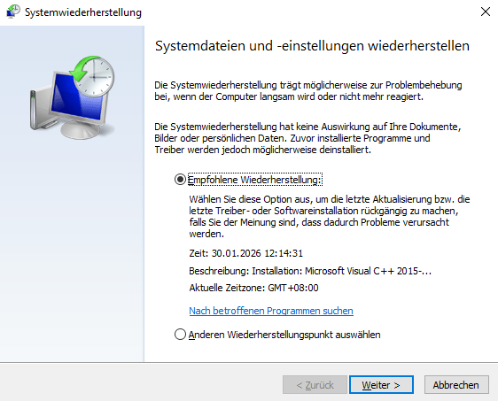 3. Stellen Sie über Systemwiederherstellung wieder her