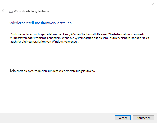 Nutzen Sie Cloud-Speicher (OneDrive, Google Drive) oder externe Laufwerke, um wichtige Dateien zu speichern. Alternativ können Sie bei Bedarf ein Wiederherstellungslaufwerk für eine vollständige Sicherung erstellen.