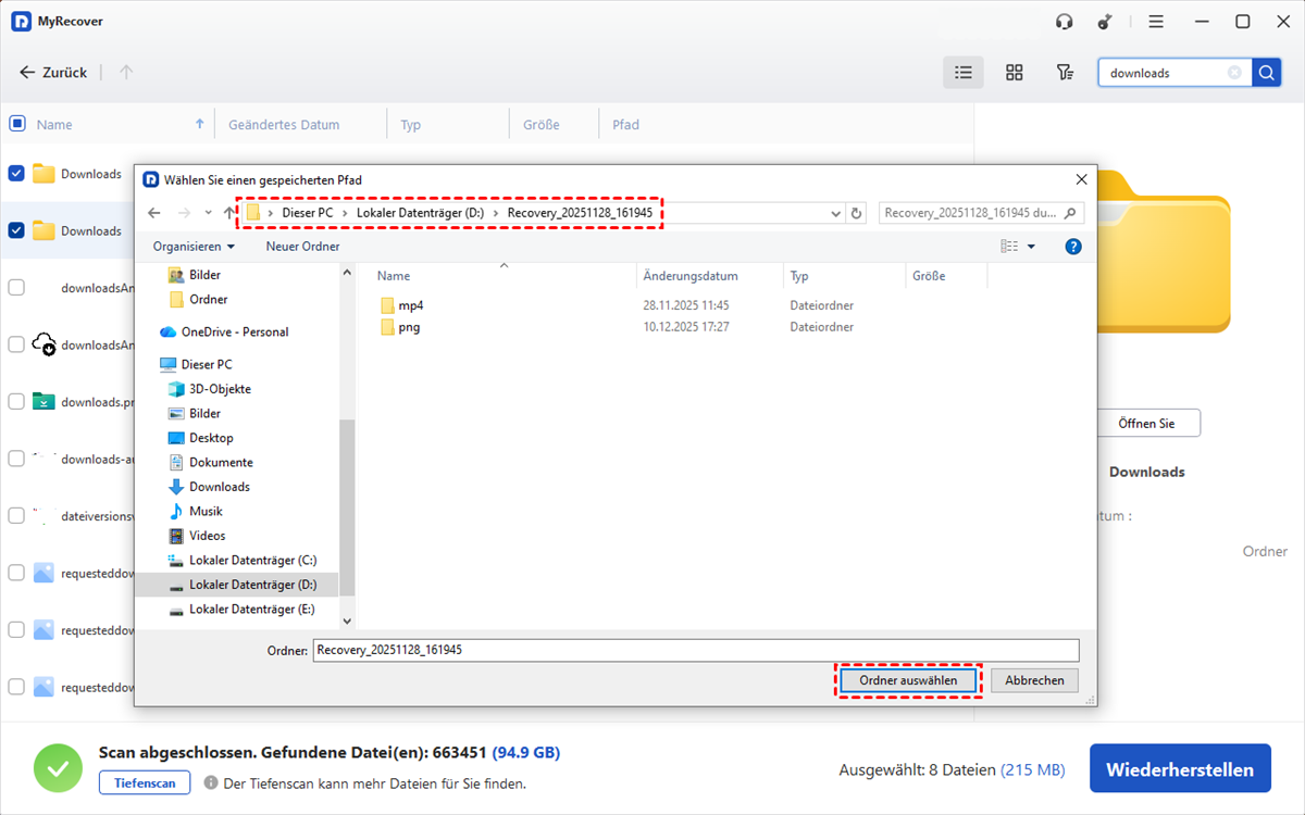 Methode 8. Verschwundenen Download-Ordner mit MyRecover wiederherstellen [Erste Wahl]