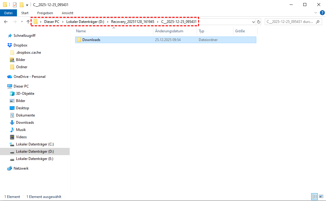 Schritt 4. Wählen Sie einen sicheren Speicherort für den wiederhergestellten Ordner „Downloads“.