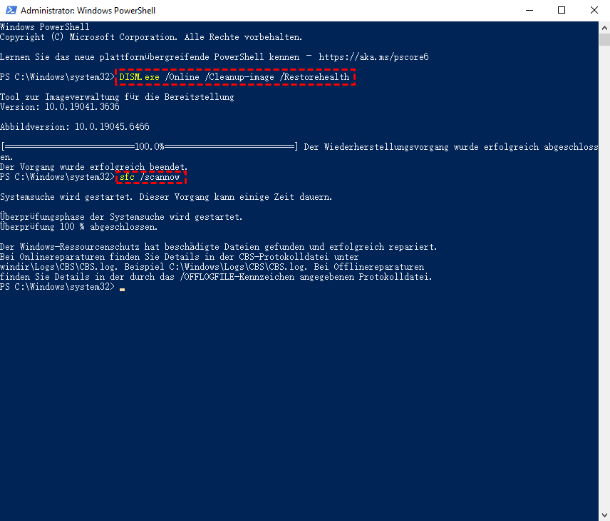 Schritt 3: Warten Sie, bis der Scan abgeschlossen ist (dies kann 10–30 Minuten dauern). Falls beschädigte Dateien gefunden werden, versucht Windows, diese zu reparieren.