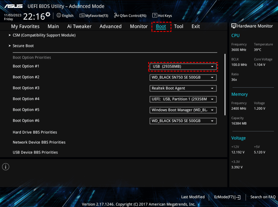4. Cambie el orden de arranque y arranque desde el USB