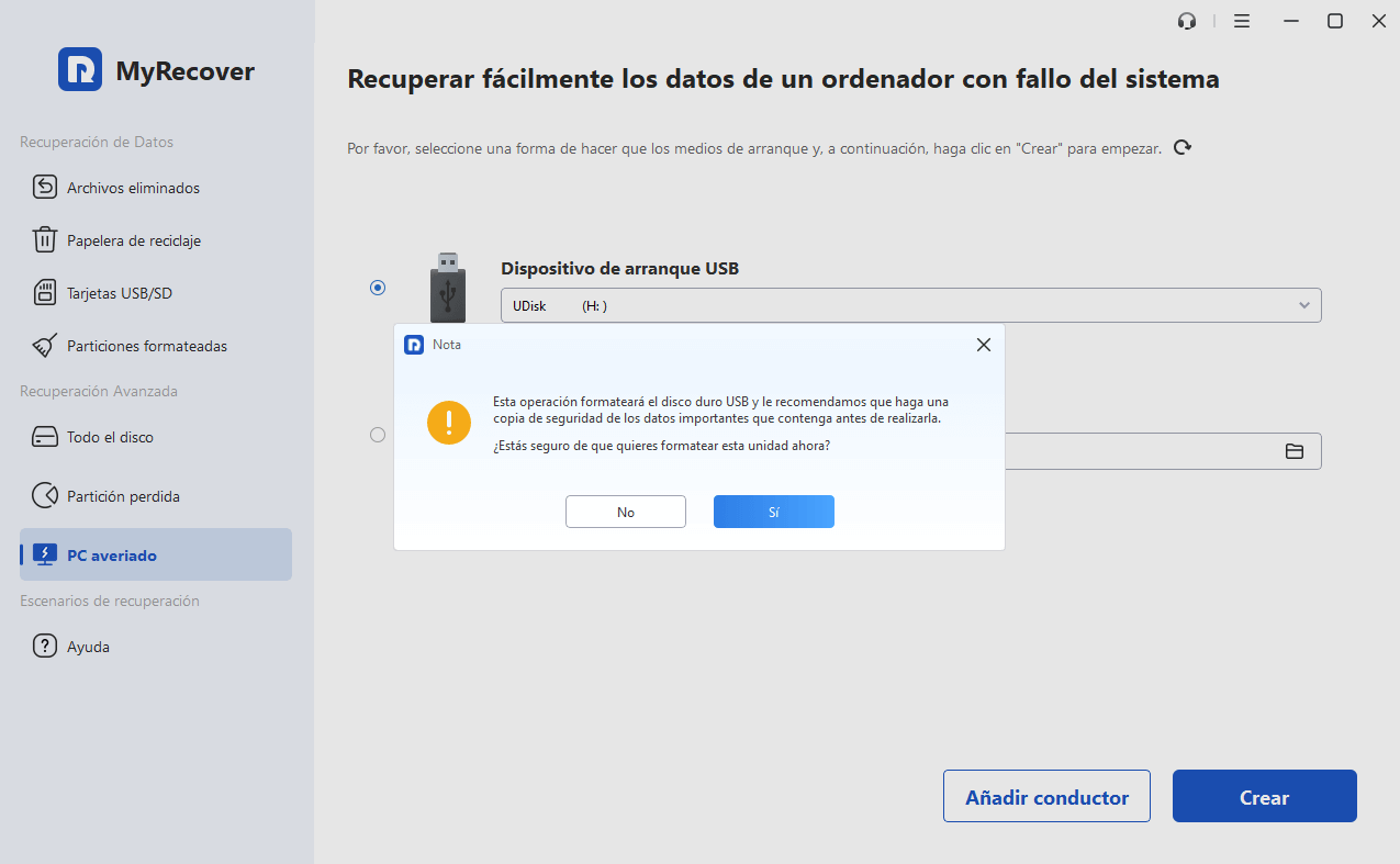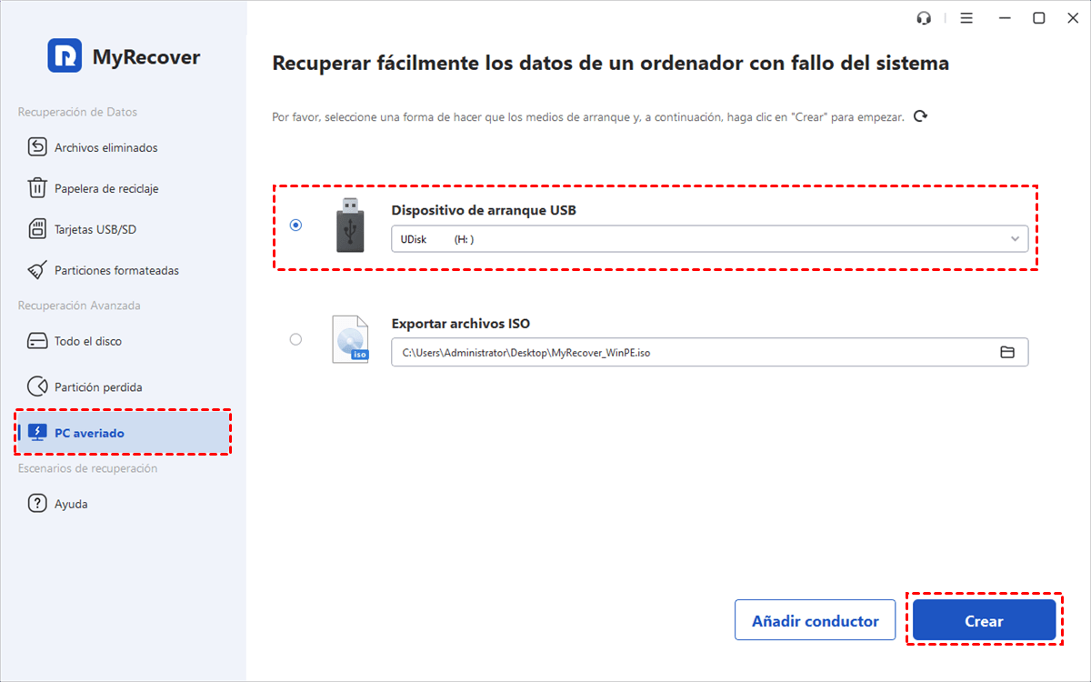 2. Crear el USB de arranque con MyRecover