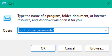 Step 2: Type control userpasswords2 and press Enter.