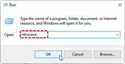 Step 1. Press "Win + R", type "rstrui.exe", and press Enter.