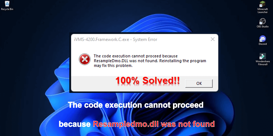 The resampledmo.dll was not found error in Windows 11 and Windows 10 usually occurs when the DLL file is missing, corrupted, or incompatible, causing the message ‘the code execution cannot proceed because resampledmo.dll was not found’ to appear when launching programs or games.