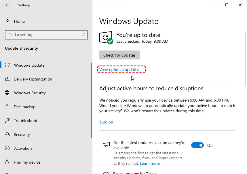 Step 2. Click "Check for updates". Windows will scan for all available updates, including optional updates that may fix system file issues.
